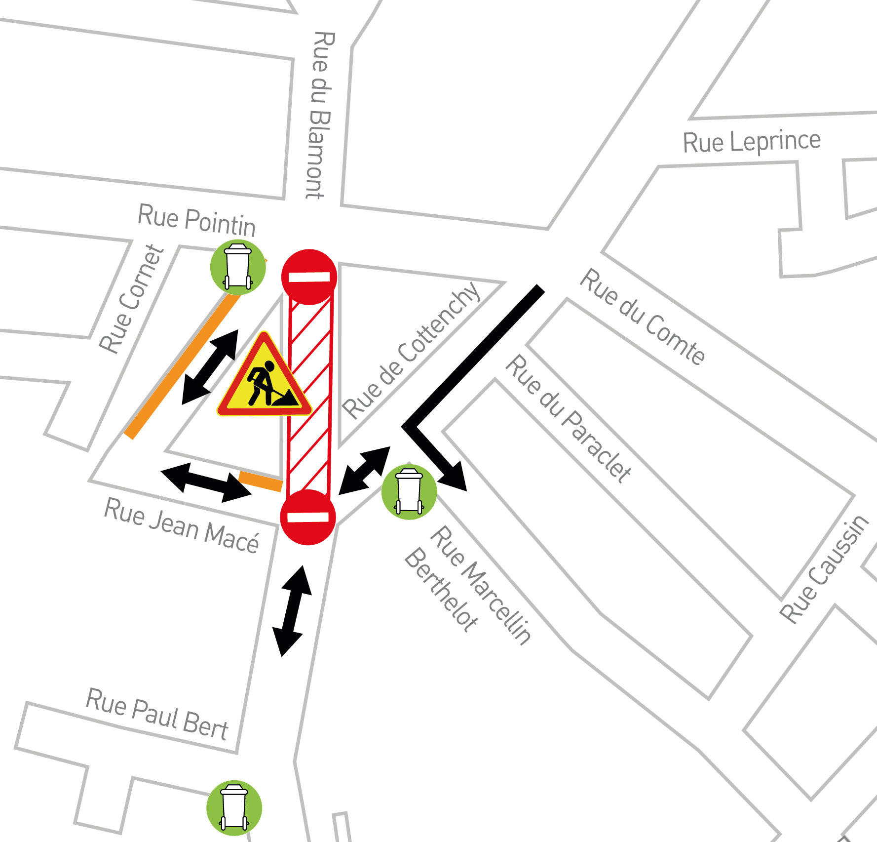 - Sens de circulation inversé entre les rues Janvier et Camille Desmoulins