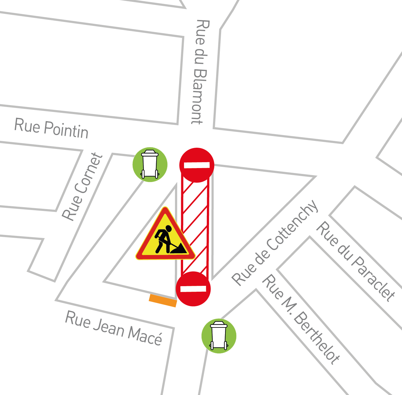 - Rue de Blamont barrée entre les rues de Cottenchy et Pointin