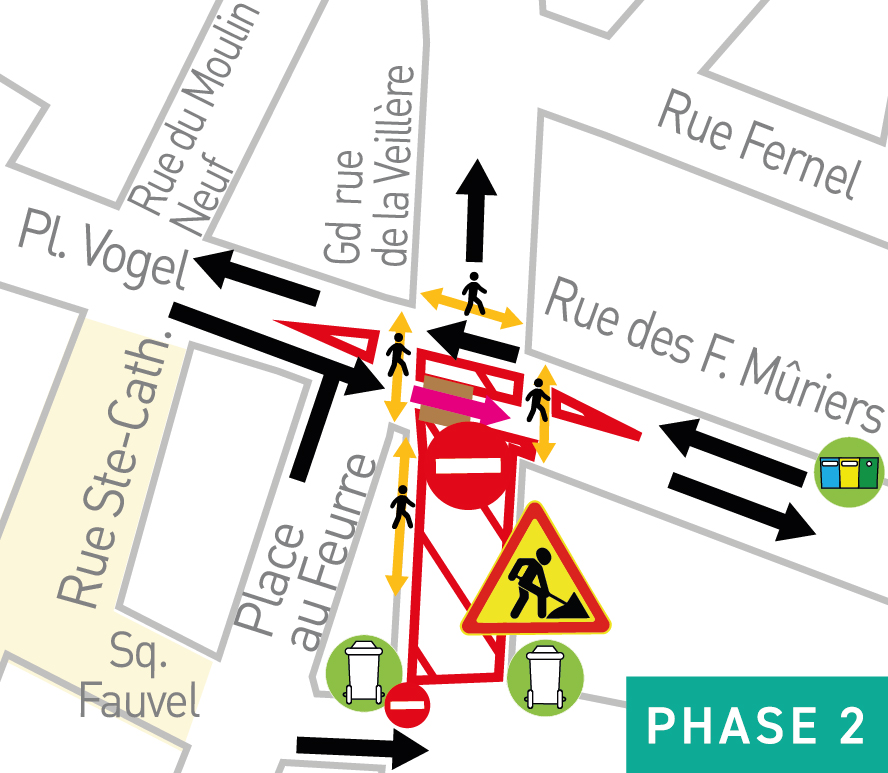 - Inversion du sens de circulation Gd rue de la Veillere de la pl. Vogel à la rue Tagault