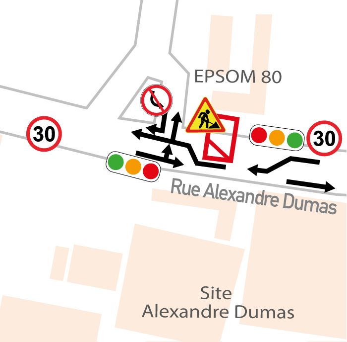 - Mise en alternat de la rue Alexandre Dumas à hauteur des travaux