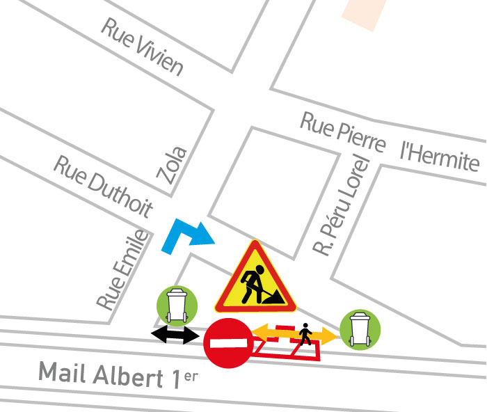- Contre-allée Mail Albert 1er barrée entre les rues Émile Zola et Duthoit pour le raccordement d’une copropriété privée