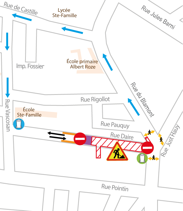 - Circulation piéton conservée au carrefour des rues du Blamont,Just Hauy et Daire