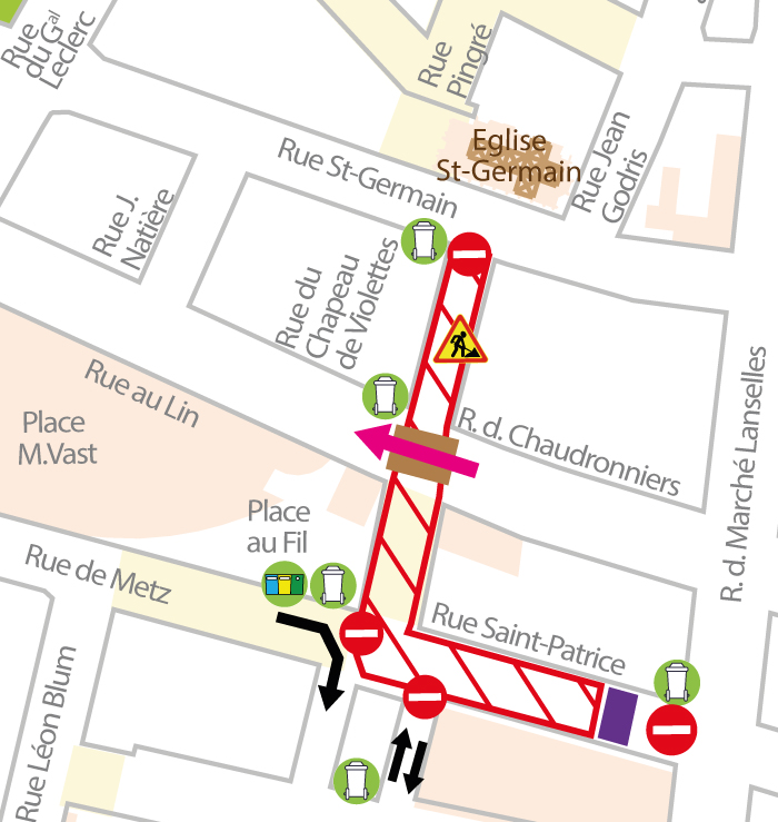 - Rues du Chapeau de Violettes et Saint-Patrice barrées