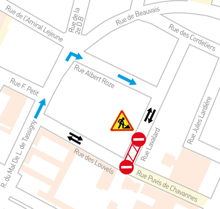 - Rue Lavalard barrée entre le n° 30 et la rue des Louvels pour réfections