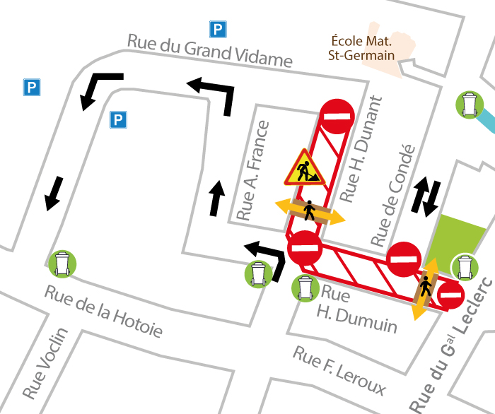 - Rues Henri Dunant et Henriette Dumuin barrées
