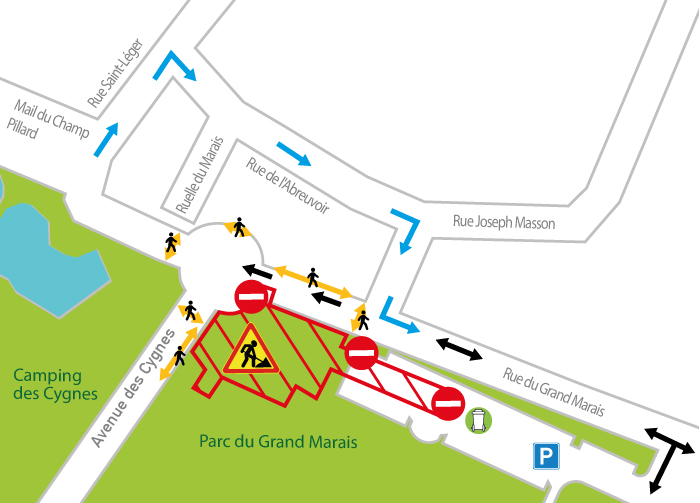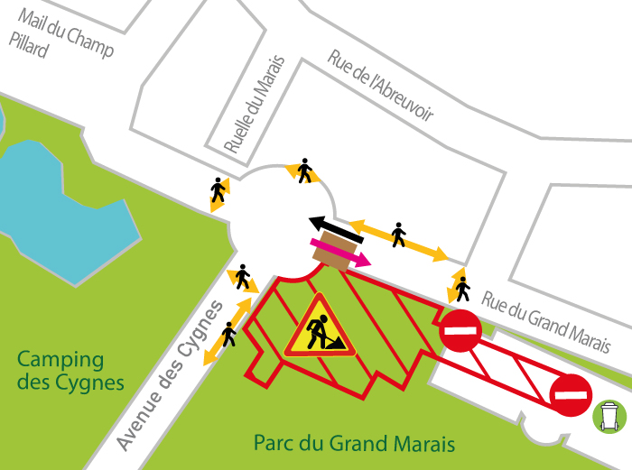 - Mise en sens unique de circulation rue du Grand Marais de 7 h à 17 h