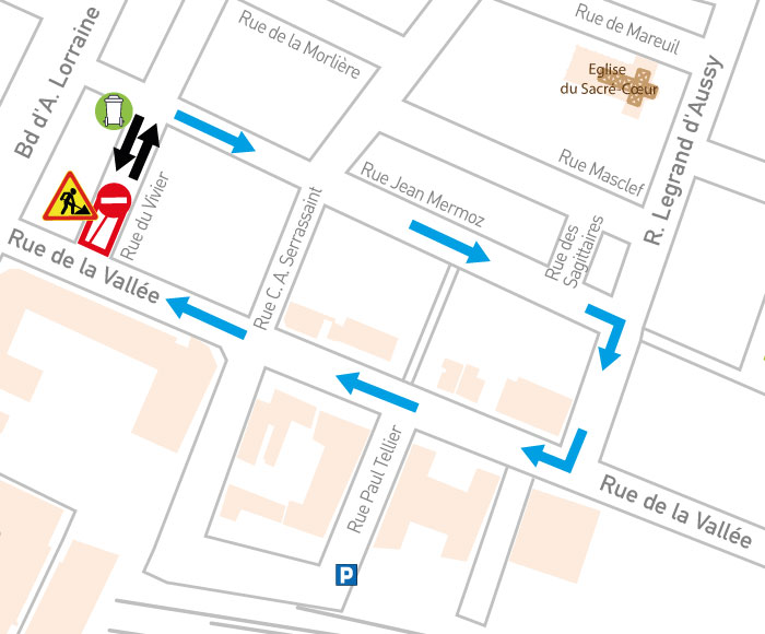 - Rue du Vivier barrée en direction de rue de la Vallée