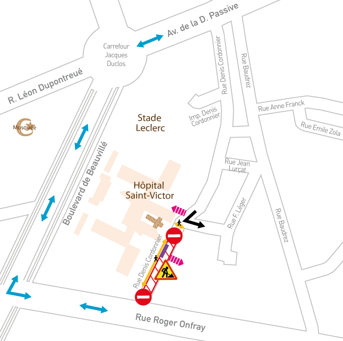 - Rue Denis Cordonnier barrée entre les rues Roger Onfray et Fernand Léger