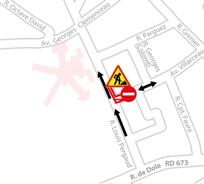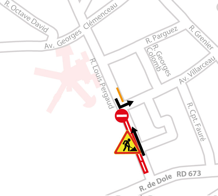 - Mise en sens unique de circulation d’une portion de la rue Louis Pergaud