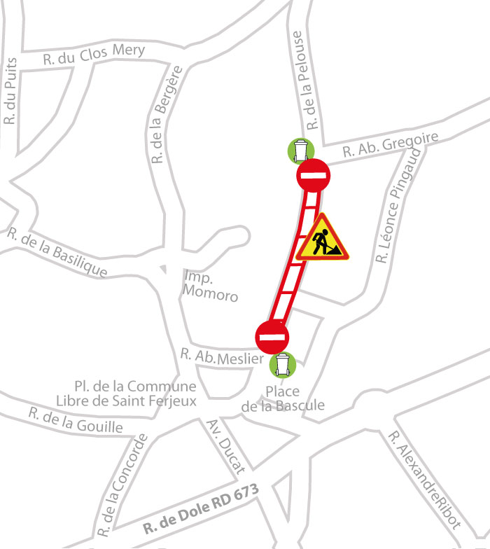 - Rues Gouille et de la Basilique barrées entre les rues de la Concorde et Abbé Meslier