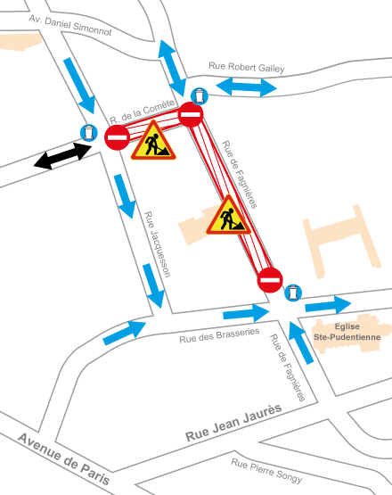 - Rue de Fagnières barrée entre le n°20 et la rue Jean Jaurès