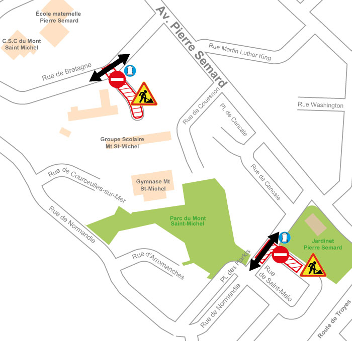 - Impasse rue de Bretagne et rue Saint-Malo barrées