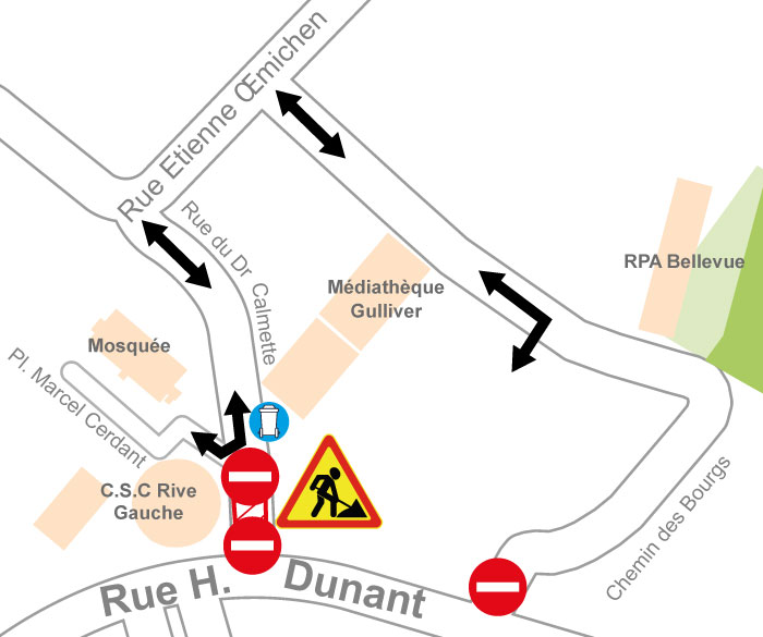 - Rue Henri Dunant barrée entre l’avenue Jeanne d’Arc et rue du Dr Calmette
