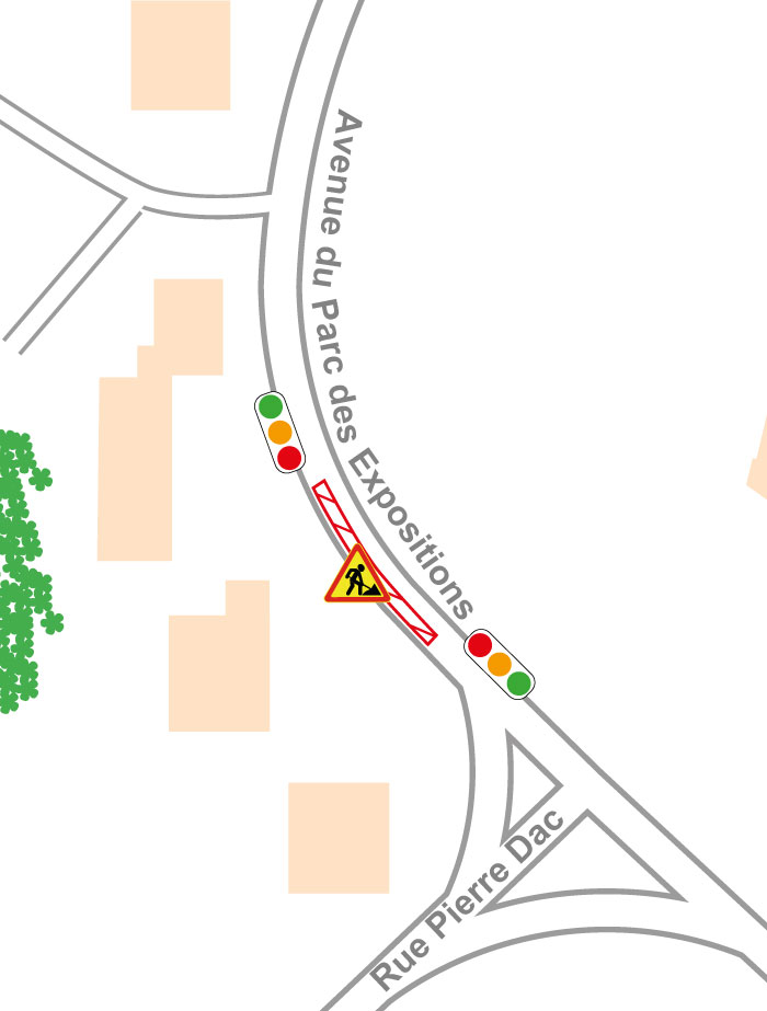 - Mise en alternat d’un tronçon de l’avenue du Parc des Expositions à hauteur du n°12