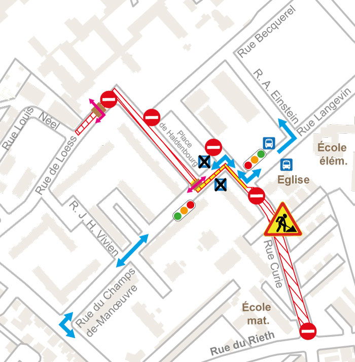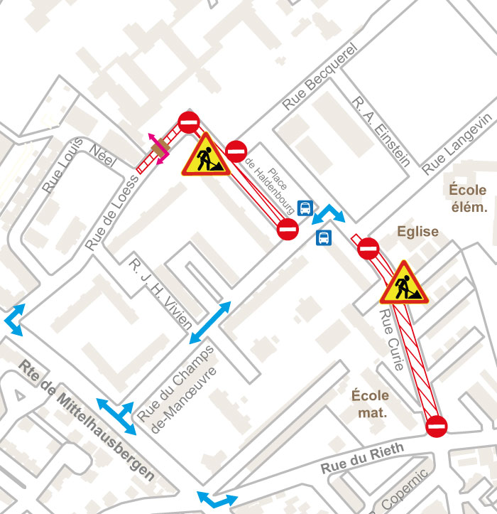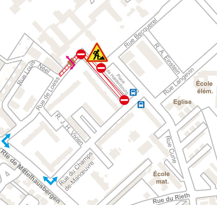- Rue de Loess barrée entre la place de Haldenbourg et la rue Louis Néel