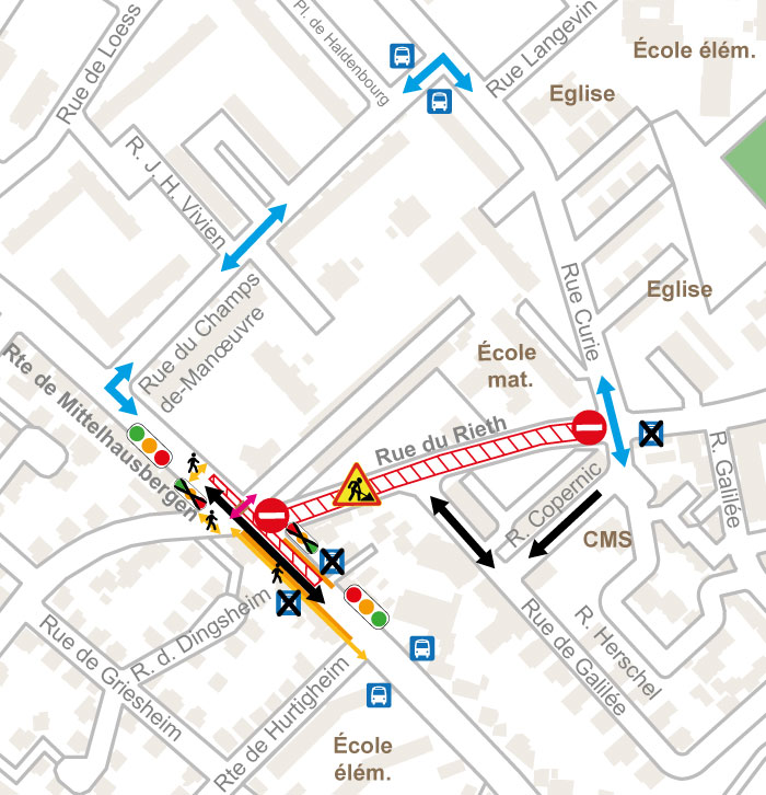 Route de MITTELHAUSBERGEN / rue du RIETH / rue CURIE à partir du 5 août 2024