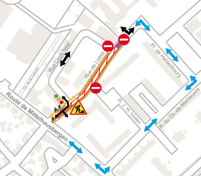 - Rue du Loess barrée entre les deux accès de la rue Louis Néel