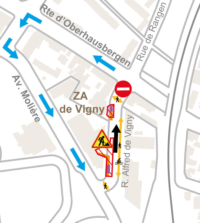 - Déviation depuis la route d’Oberhausbergen et l’avenue Molière