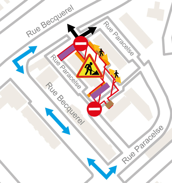 Pour faciliter la circulation vous trouverez sur ces cartes, les zones concernées par les travaux et les itinéraires de circulation que vous pourrez emprunter durant cette période.