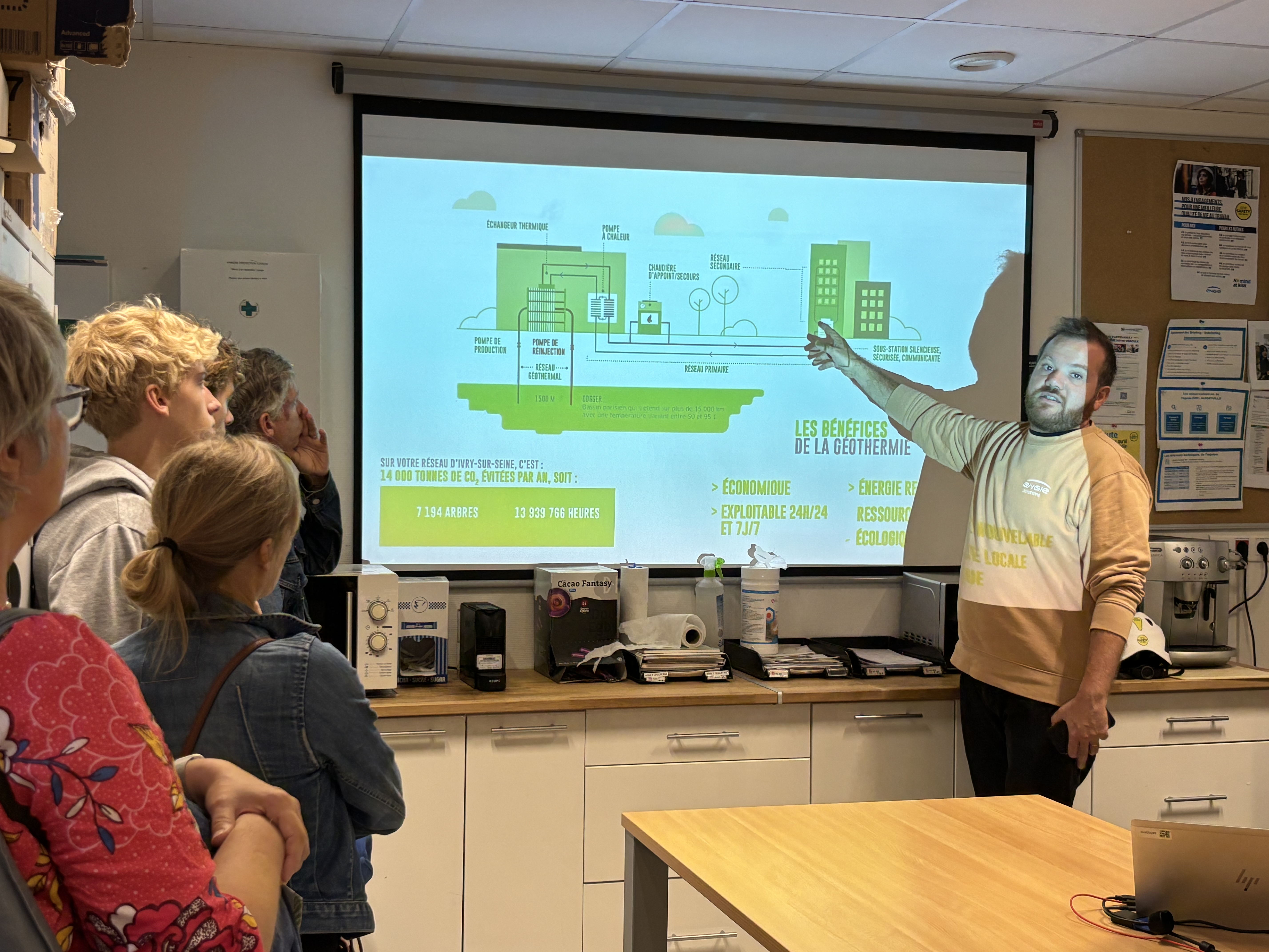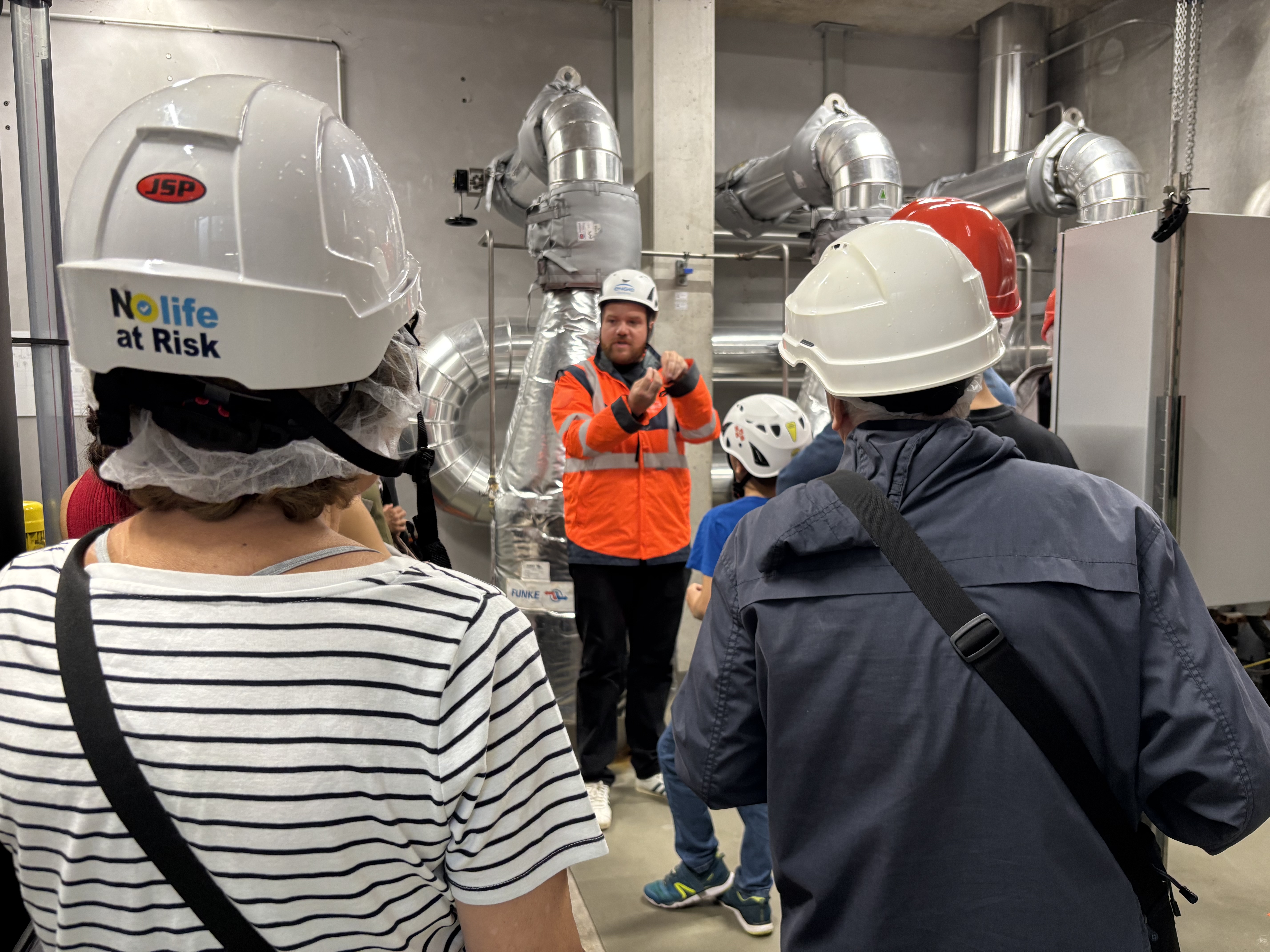 Les visites étaient assurées par Johan Dumaine et Jean-Marc Bertrand, qui ont présenté le fonctionnement de la géothermie et les particularités du site d’Ivry. Les participants ont ainsi découvert comment la chaleur de la Terre est utilisée pour fournir, depuis 2017, chauffage et eau chaude sanitaire à la ville.