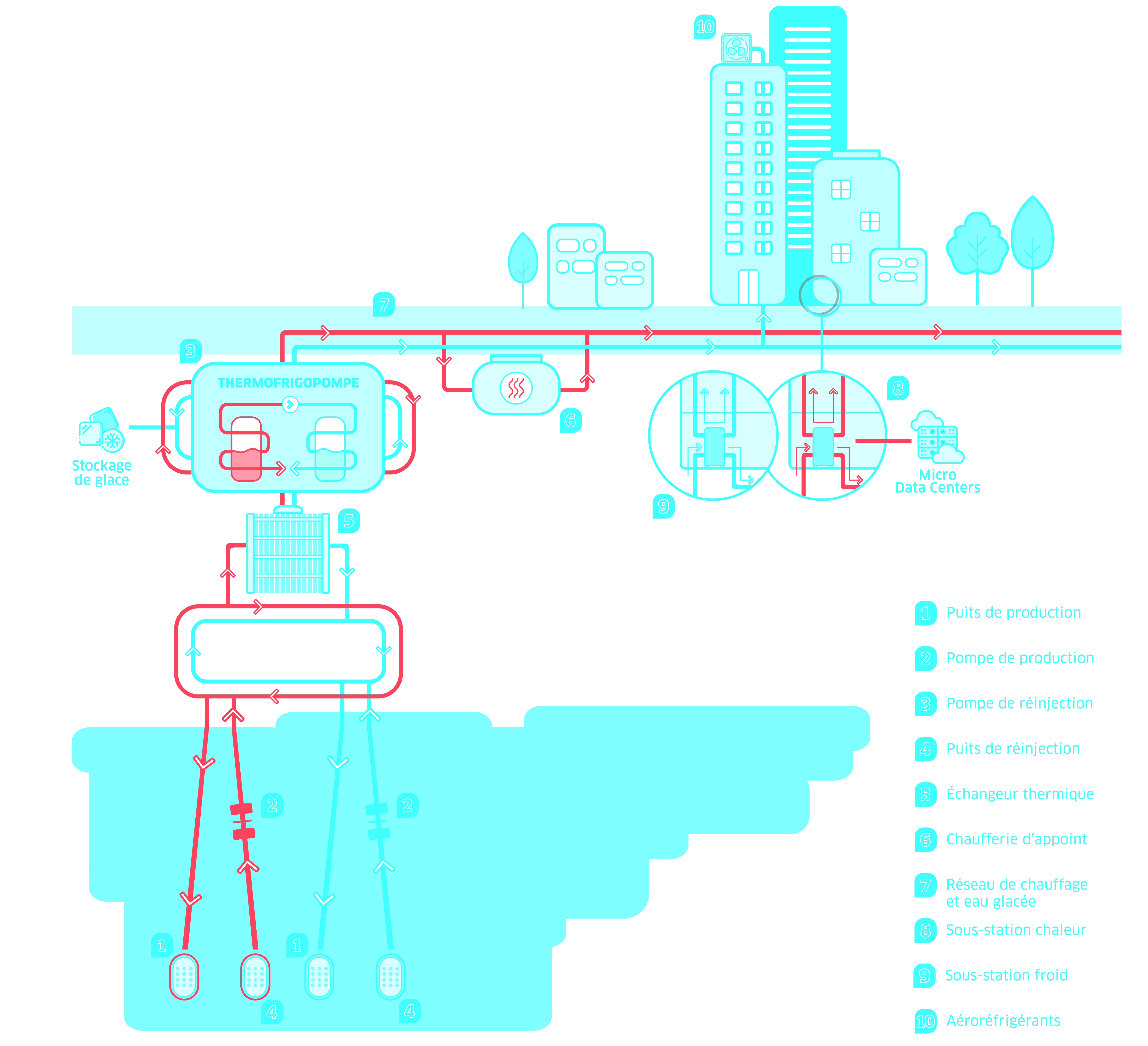 Et parce que le quartier aura de multiples usages, les boucles d’eau chaude et froide permettront de rafraîchir par exemple un commerce tout en réchauffant les logements.