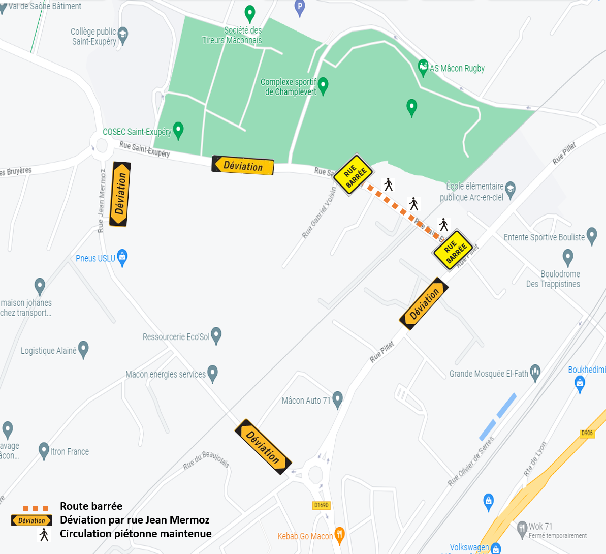 Sur la période, la rue Saint Exupéry sera fermée à la circulation des véhicules et des deux roues au niveau de la rue Pillet jusqu’à la résidence des Bruyères. Les accès seront maintenus pour les riverains.