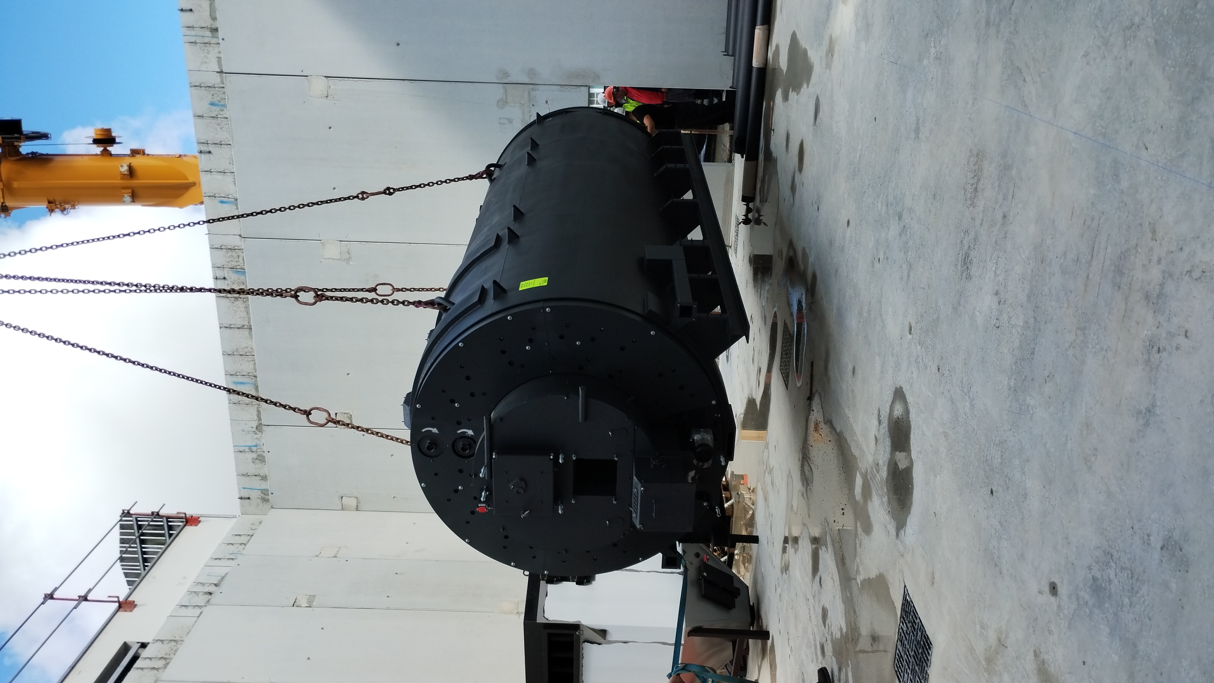 L’arrivée de cette chaudière de 1,6 MW marque une étape importante dans l’avancée des travaux du réseau de chauffage.