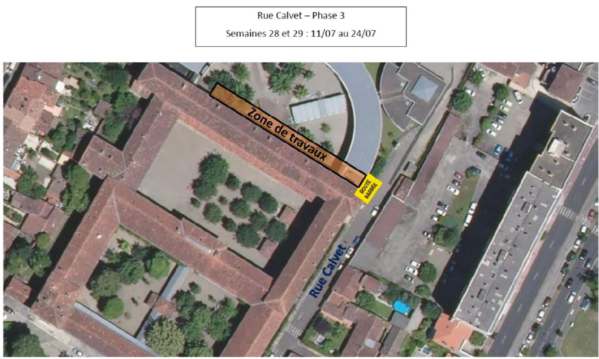 Le chantier rentre dans sa 12ème phase. À partir du 11 juillet jusqu'au 28 août, elle permettra de poser les nouvelles canalisations rue Calvet en 3 phases.