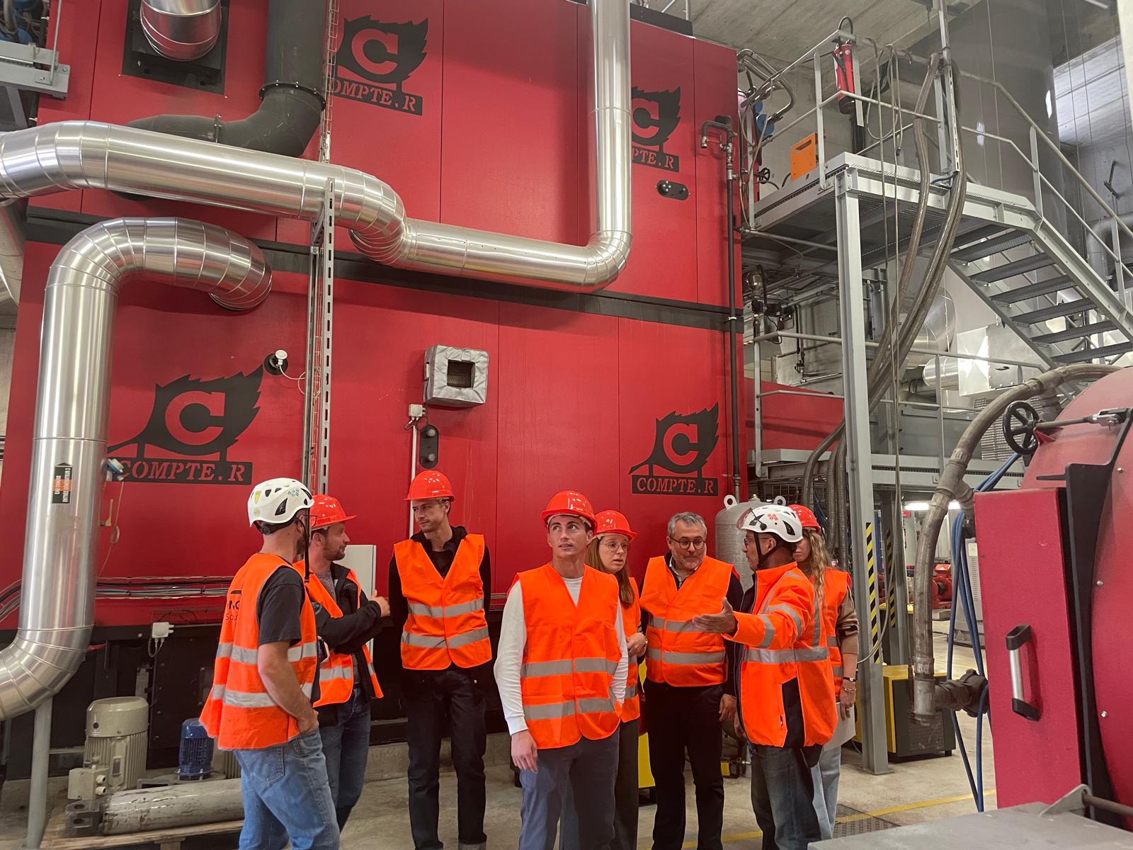 Durant la matinée, les participants ont découvert le fonctionnement de la chaufferie et échangé autour de sujets concrets : approvisionnement en bois local, processus de combustion ou encore valorisation des cendres.
