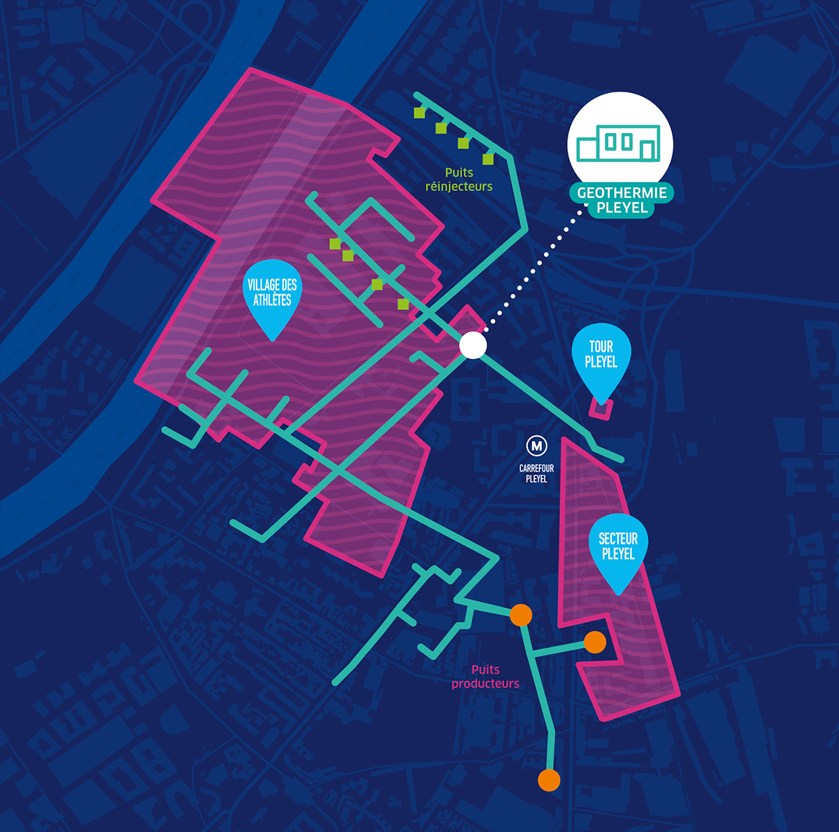 Le Réseau de chaleur du SMIREC géré par Plaine Commune Énergie, filiale à 100% d’ENGIE Solutions, s'est étendu sur le quartier Pleyel. Il fournit en chaleur et en froid, le village olympique et paralympique, la ZAC Pleyel dont le projet des Lumières Pleyel, ainsi que la Tour Pleyel réhabilitée en hôtel.