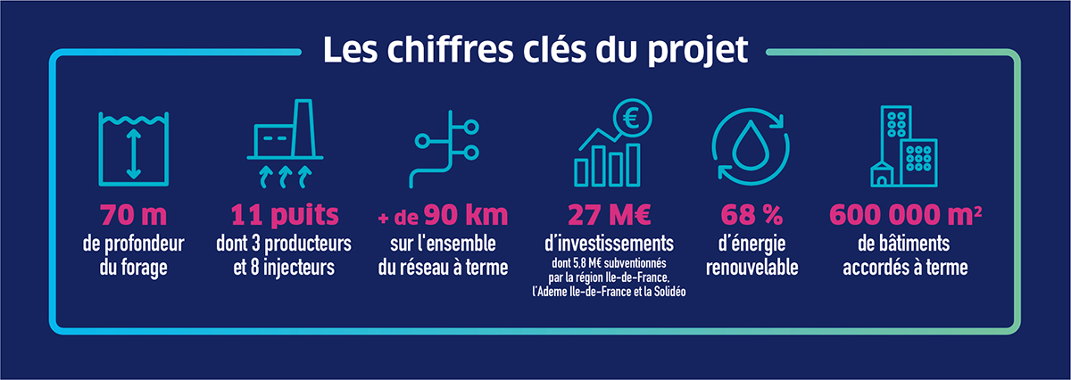 Pour répondre à ces enjeux de développement représentant plus de 600 000 m² de bâtiments, Plaine Commune Énergie produit en simultané du chaud et du froid grâce aux 11 puits de la géothermie superficielle, associée à l’installation de groupes thermo-frigopompes Cette construction permet à ces bâtiments de bénéficier d’une énergie à 68% renouvelable.