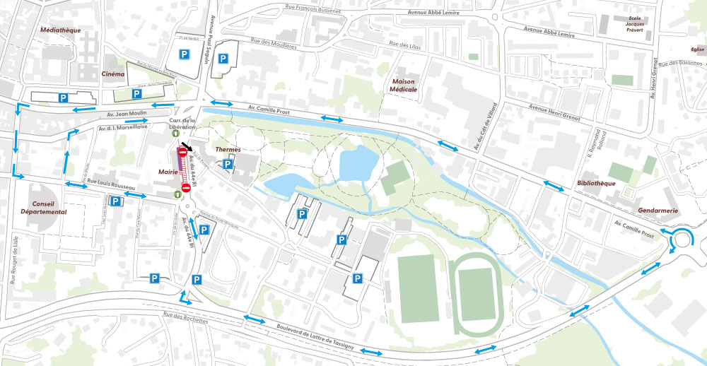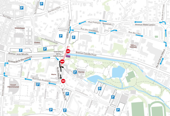 - Avenue Camille Prost barrée au niveau du carrefour de la Libération
