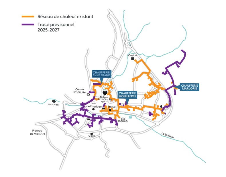 Le réseau de chaleur de Lons-le-Saunier est exploité par LONS ENERGIES, filiale d’ENGIE Solutions, qui assure le service public de production et distribution de chaleur de la ville. Il est long de 11,7 km et dispose d’une puissance installée de 31,9 MW (25 MW à La Marjorie & Mouillères, 6,9 MW Anne Frank).
