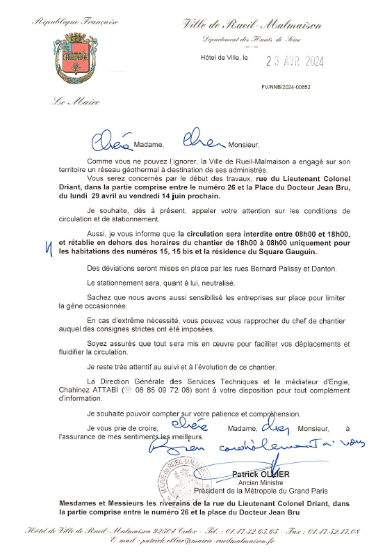 Rueil-Malmaison - Travaux rue du Lieutenant Colonel Driant