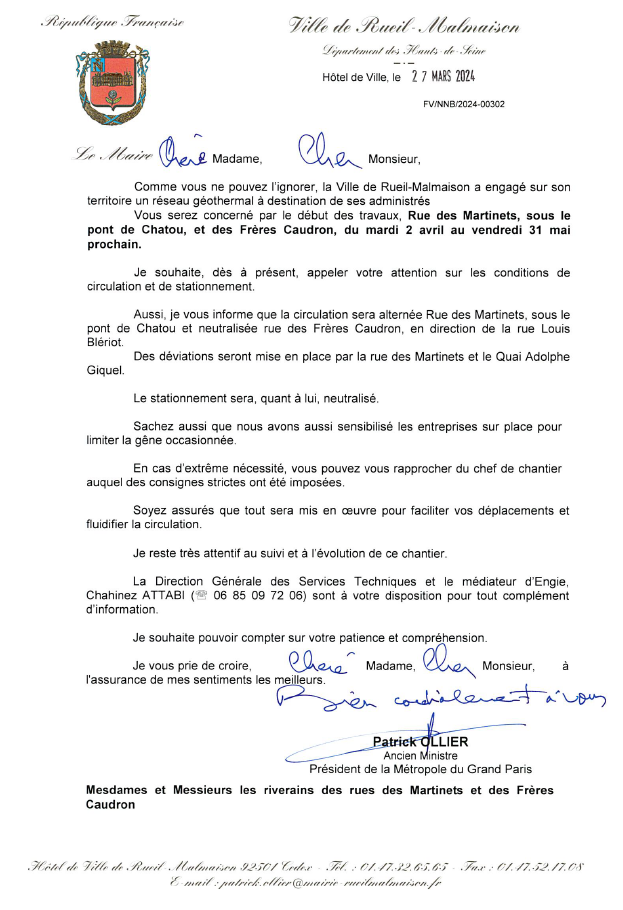 Rueil-Malmaison - Travaux rue des Martinets / Rue des Frères Caudron