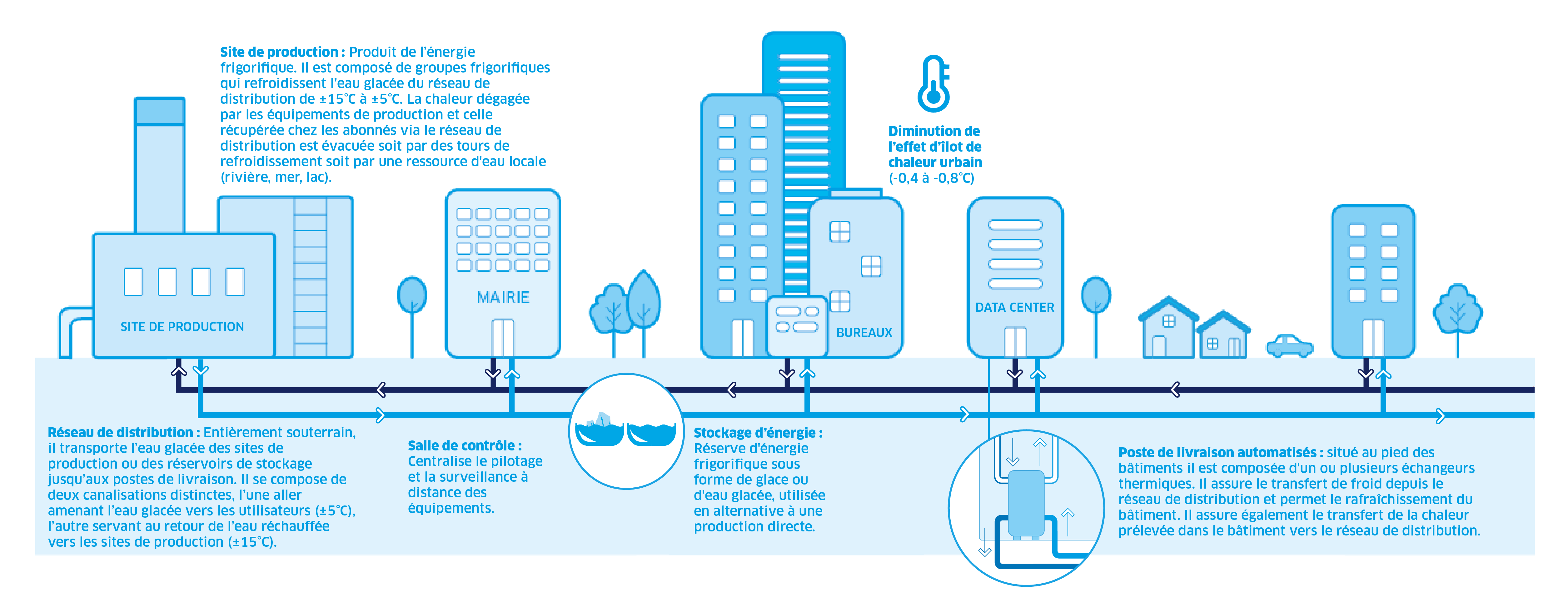 Le réseau de froid SESAS (Stade Énergies SAS) a été créé en 1997 à l’occasion de la construction du Stade de France. La société SESAS assure la production, la distribution et le développement du réseau d’eau glacée pour les besoins en climatisation et en refroidissement du Stade de France et des bâtiments tertiaires à proximité. Le réseau de froid garantit un rafraîchissement optimisé des bâtiments à un coût maîtrisé : une fourniture du froid en continu qui s’adapte en permanence aux besoins des clients assurant ainsi confort, sécurité et efficacité énergétique. Aujourd'hui, plus de 400 000 m2 de bâtiments tertiaires dionysiens sont rafraichis grâce à cette solution vertueuse.