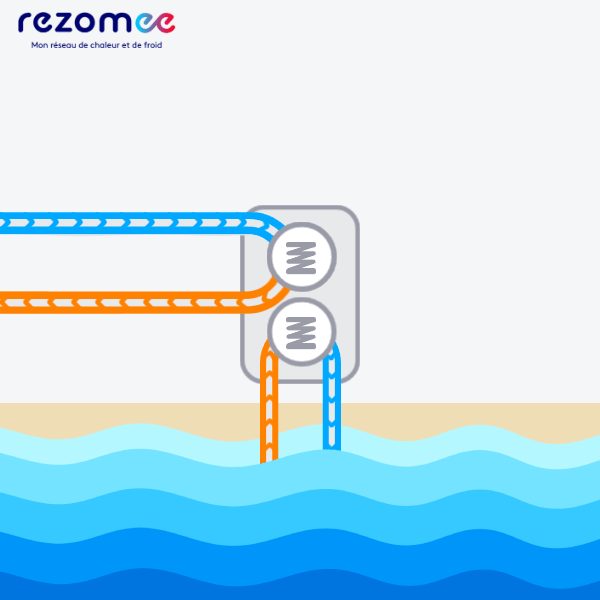 L'eau de mer est ensuite restituée dans son milieu naturel, sans risque pour la faune et la flore, tandis que l'énergie véhiculée par le circuit d'eau douce est utilisée par une thermo frigo pompe ou une pompe à chaleur, permettant d'amplifier la chaleur ou le froid.