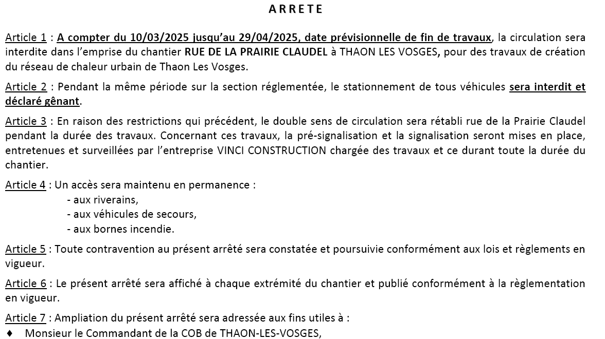 THAON-LES-VOSGES - Prolongation Travauux Rue de la Prairie Claudel