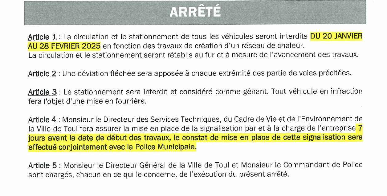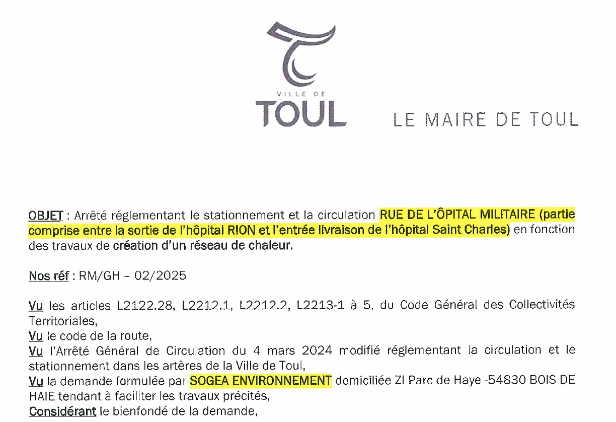 TOUL - Travaux Rue de l'Hôpital Militaire - Entre l'Hôpital Rion et l'entrée Livraison de l'Hôpital St Charles - Du 20/01/2025 au 28/02/2025