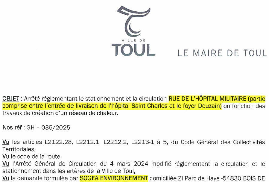 TOUL - Travaux Rue de l'Hôpital Militaire (entre l'entrée livraison de l'hôpital et le foyer Douzain)