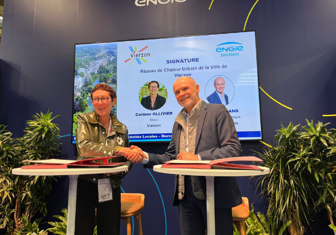 Cet accord, d'une durée de 22 ans, a été officialisé par Corinne Ollivier, maire de Vierzon, et Yann Rolland, directeur général délégué d’ENGIE Solutions, pour couvrir 88 % des besoins en chauffage et en eau chaude sanitaire de la ville grâce à la biomasse.